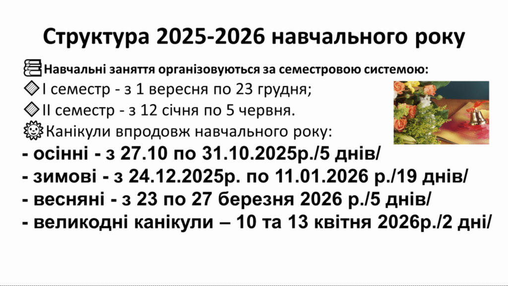 Розклад дзвінків та уроків у 2025-2026н.р.